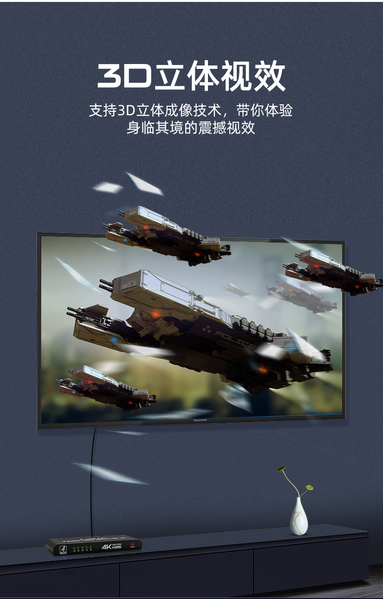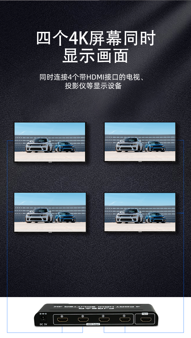 2.最高支持4K*2K@25/30Hz,向下兼容多種分辨率