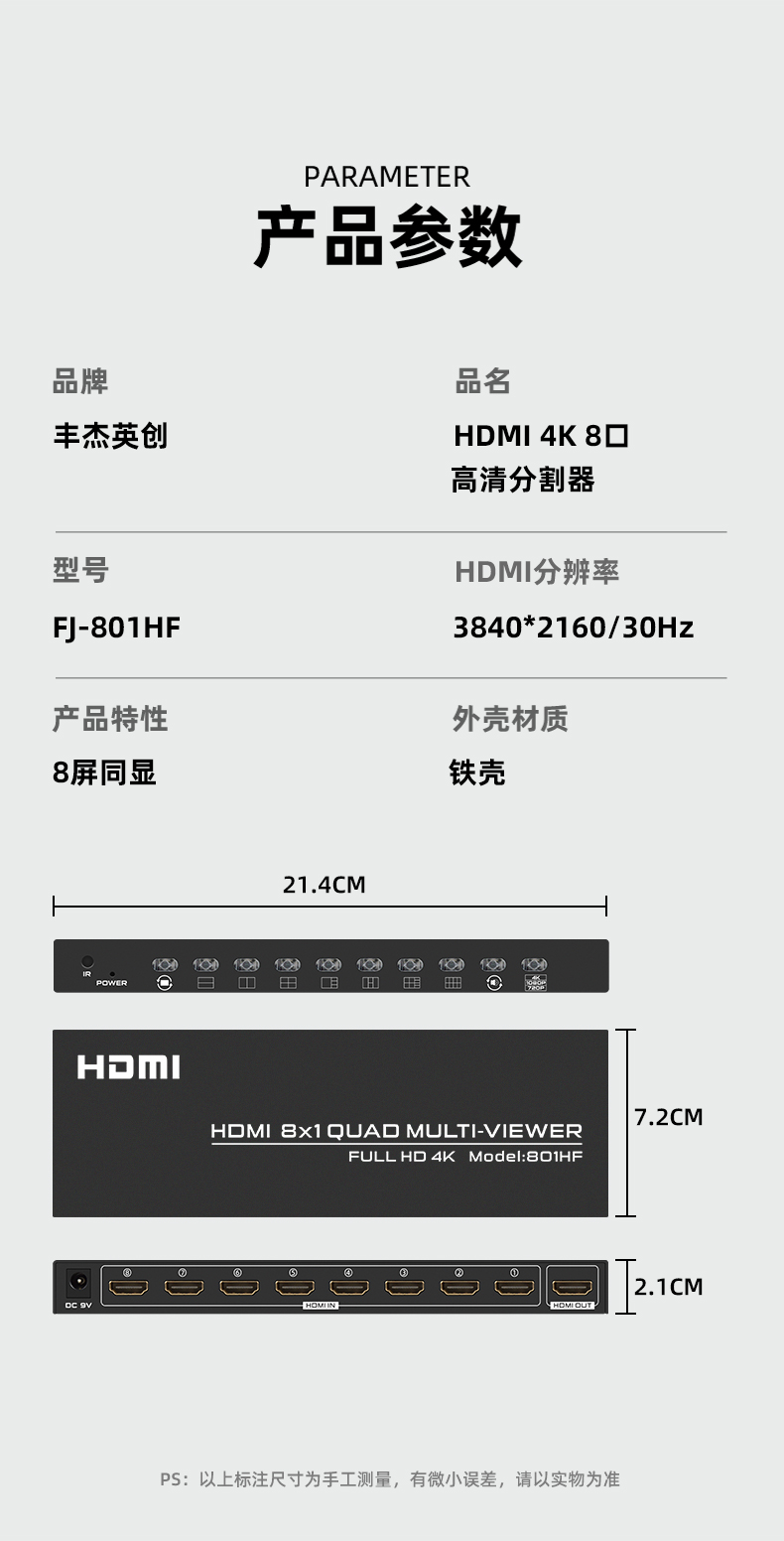 3.HDMI 版本:HDMI 1.4 兼容HDMI 1.4版本以下版本的信號(hào)源,顯示器,信號(hào)連接線纜