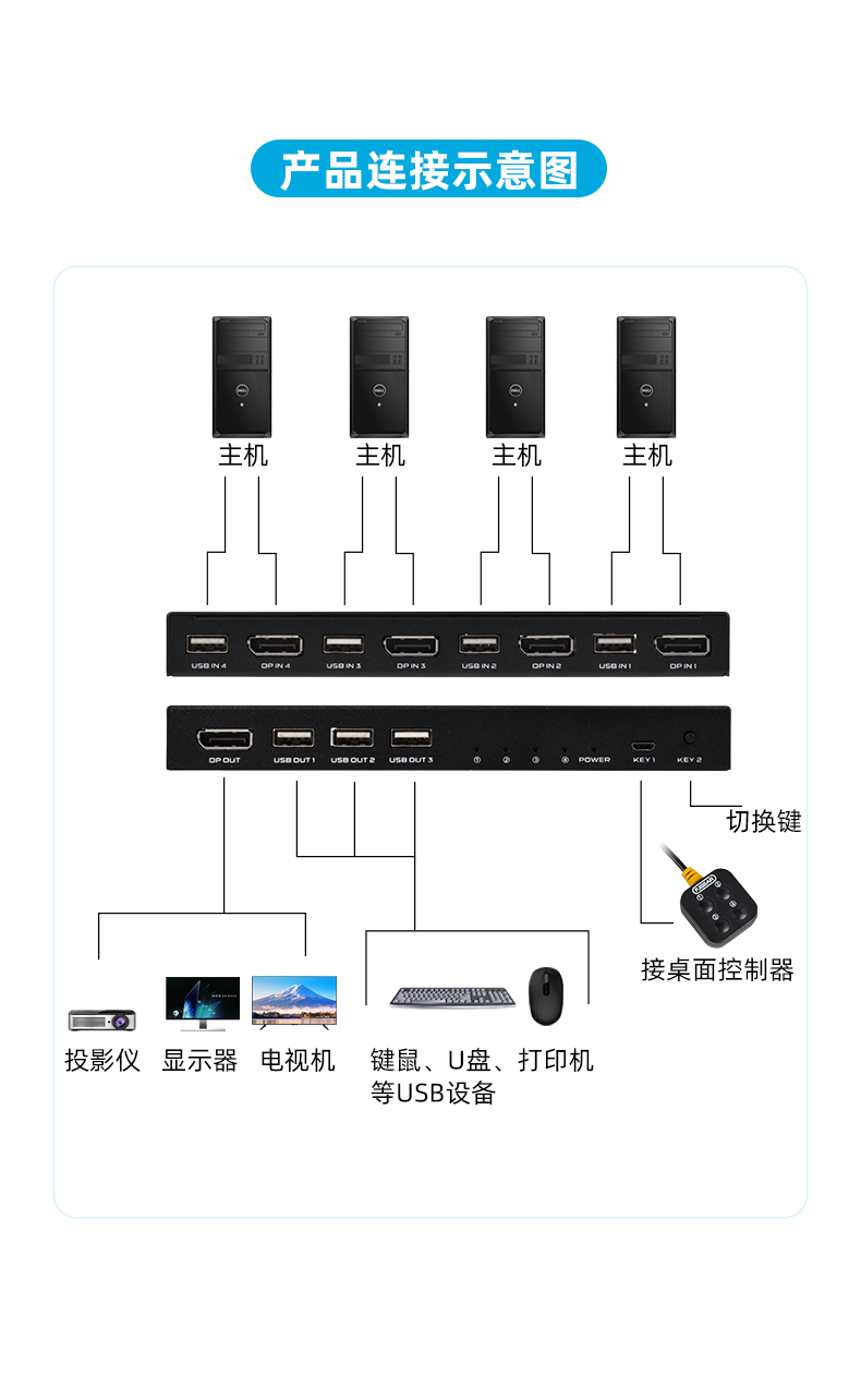 3.產(chǎn)品特性:四臺電腦共用鍵鼠顯示器