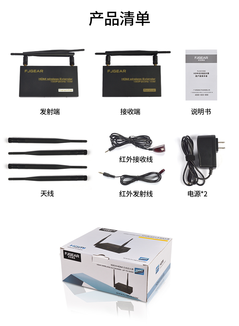 HDMI無線延長器采用無線TCP/IP協(xié)議通過無線信號5.8G頻段實現(xiàn)無線高清音視頻信號傳輸,