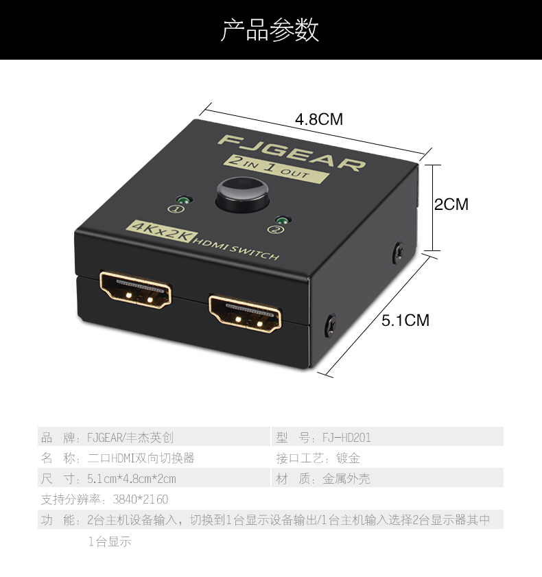 FJ-HD201 HDMI切換器二進(jìn)一出