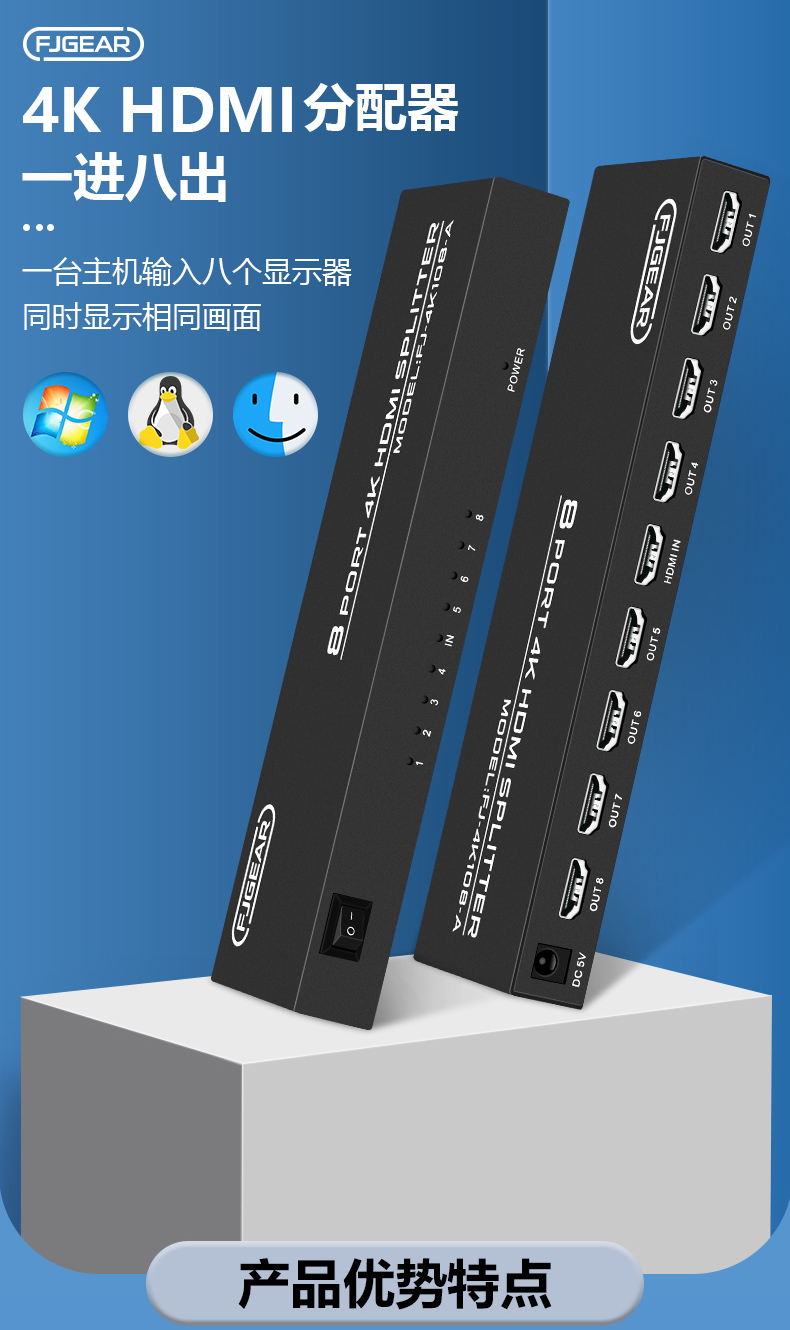 1.最高支持4K*2K@25/30HZ,向下兼容多種分辨率