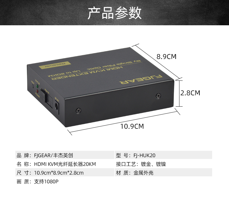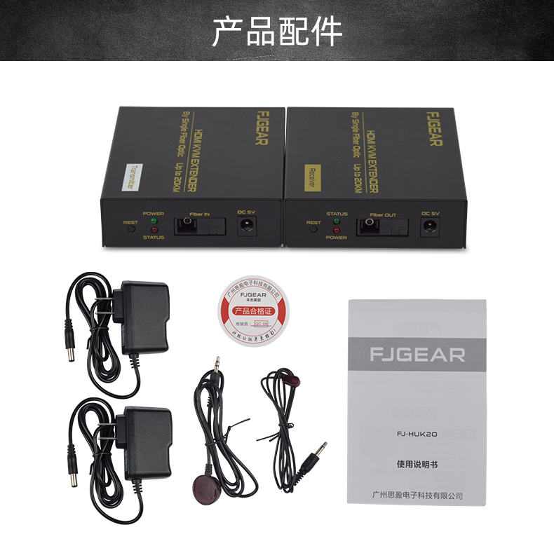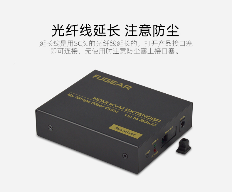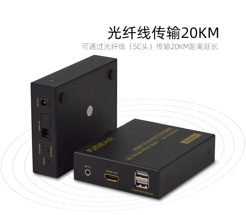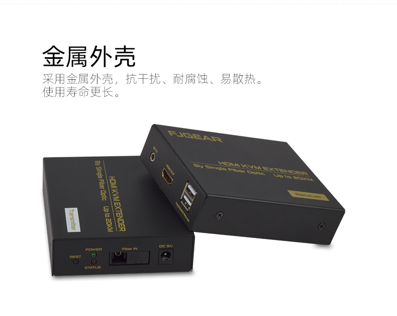 FJ-HUK20是一款高清視頻和USB鍵鼠的KVM延長(zhǎng)器,傳輸介質(zhì)是單模光纖線(xiàn);它將一路HDMI高清信號(hào)和USB鍵鼠信號(hào)通過(guò)