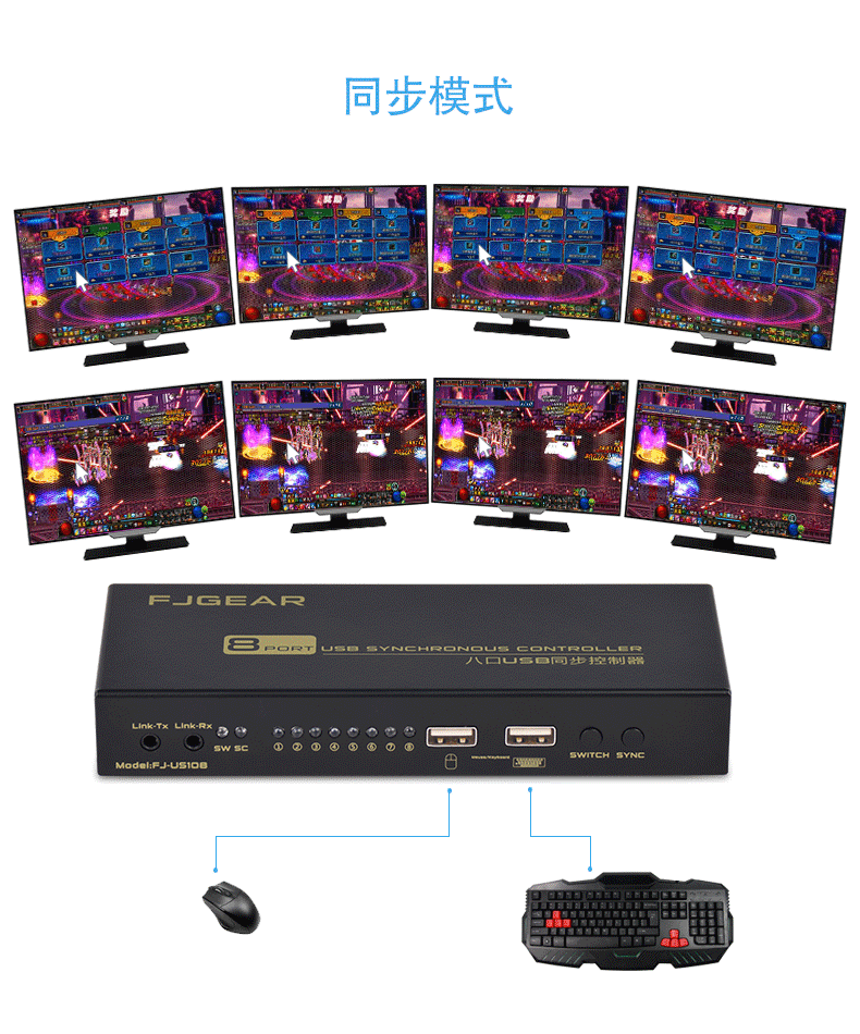 2)級(jí)聯(lián)時(shí),以當(dāng)前連接鼠標(biāo)鍵盤(pán)的同步器為主機(jī),其他被級(jí)聯(lián)的為從機(jī)。