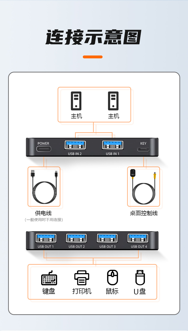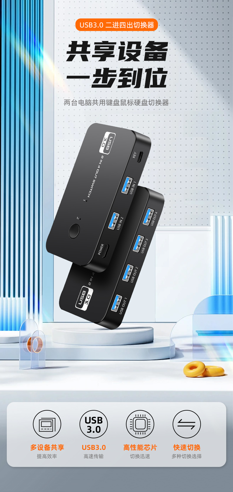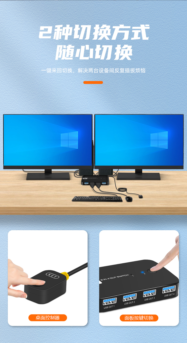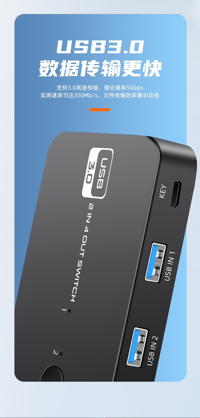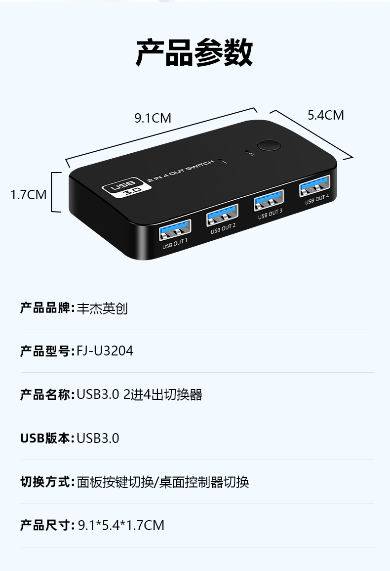 3.產(chǎn)品名稱:USB3.0 2進(jìn)4出切換器