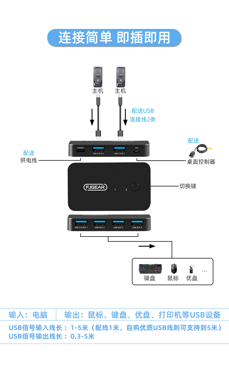 2.USB輸入/輸出線長:1-5m(視線纜質量而定)