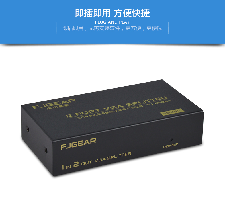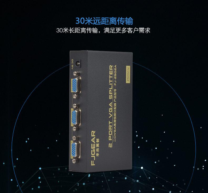 1:250MHz 系列VGA分配器是高清VGA信號分配器,適用于液晶電視機和投影儀等大屏幕顯示設備。具有長距離驅動功能