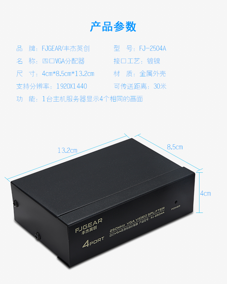 2:該系列VGA分配器有二路、四路、八路等多種端口