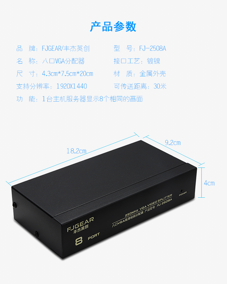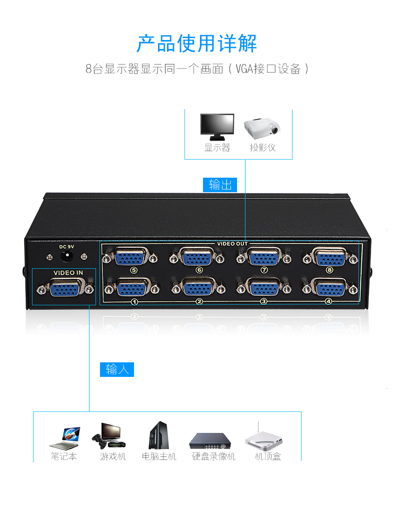 2:該系列VGA分配器有二路、四路、八路等多種端口