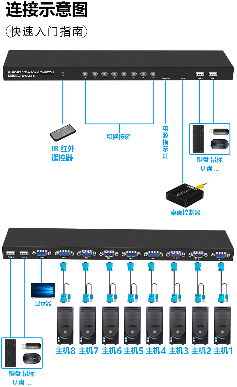 3.產(chǎn)品名稱(chēng):8口 VGA KVM 切換器