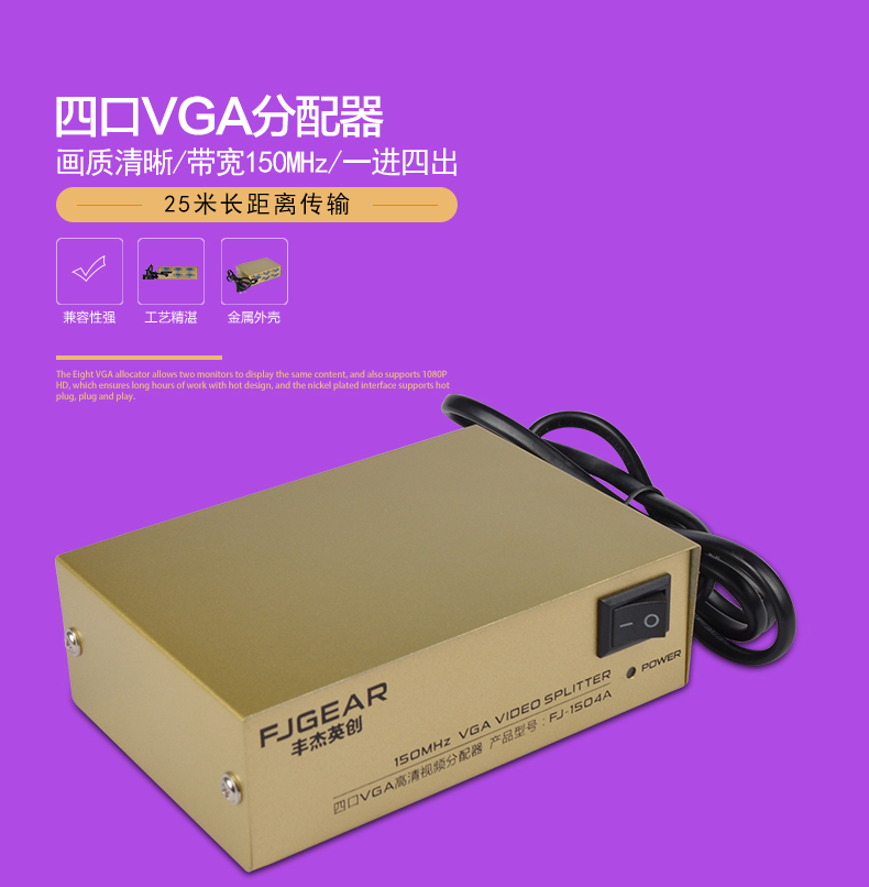1:150MHz 系列VGA分配器是高清VGA信號(hào)分配器,適用于液晶電視機(jī)和投影儀等大屏幕顯示設(shè)備。具有長(zhǎng)距離驅(qū)動(dòng)功能