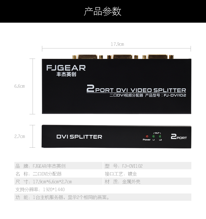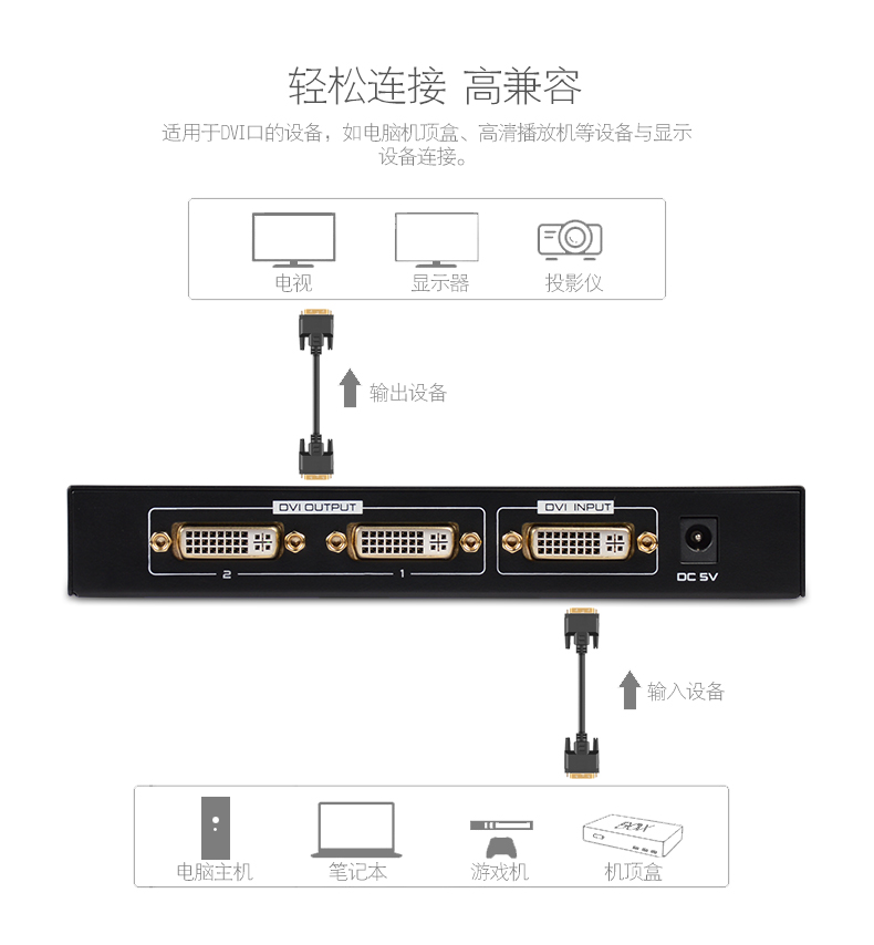 1.1路DVI輸入,2路DVI輸出