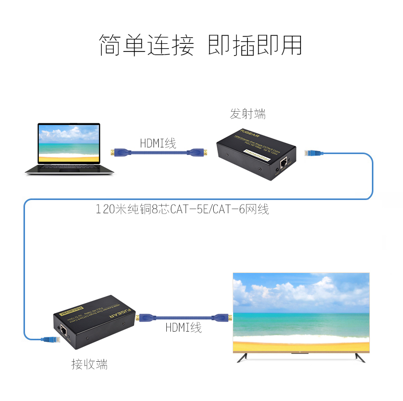 2.采用CAT-5E/6網(wǎng)線代替HDMI線來實(shí)現(xiàn)遠(yuǎn)距離傳輸