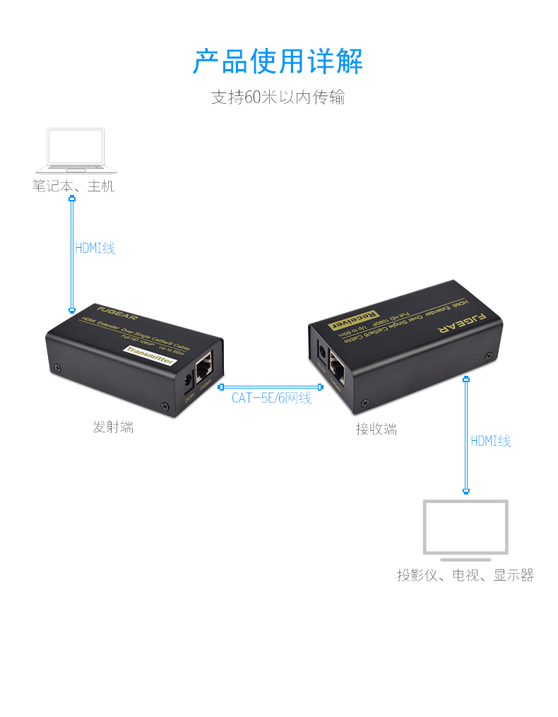 2.采用CAT-5E/6網(wǎng)線代替HDMI線來實現(xiàn)遠(yuǎn)距離傳輸