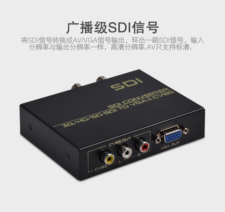 本產(chǎn)品提供一路(SD-SDI/HD-SDI/3G-SDI)SDI信號(hào)轉(zhuǎn)換成VGA或者AV信號(hào),支持全高清SDI信號(hào)的輸入及輸出;操作簡(jiǎn)單易用,穩(wěn)定性和可靠性極高;廣泛應(yīng)用于SDI信號(hào)的各級(jí)電視臺(tái)播出機(jī)房和非編制作領(lǐng)域以及安防監(jiān)控、培訓(xùn)展示場(chǎng)所等領(lǐng)域。