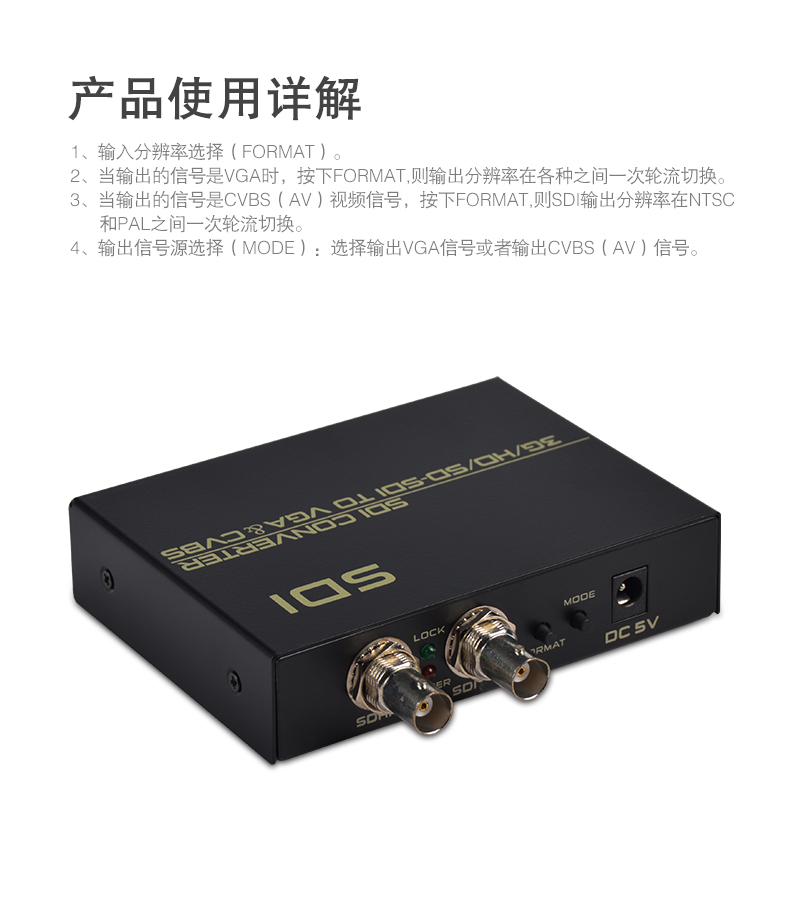 當(dāng)輸出的信號(hào)是CVBS(AV)視頻信號(hào),按下FORMAT按鍵,則輸出分辨率在NTSC和PAL之間一次輪流切換。