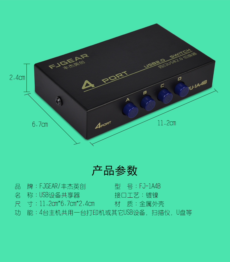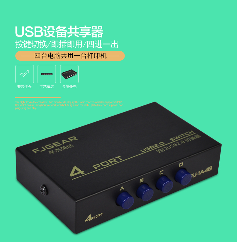 USB切換共享器是把多臺主機(jī)的USB共享為一個端口,支持所有USB打印設(shè)備,從而達(dá)到節(jié)省資源,方便工作的目的。