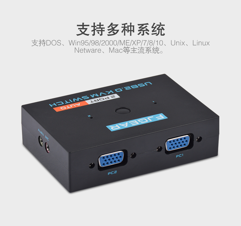 201UA是兩臺電腦(服務(wù)器)的KVM(鍵盤、視頻、鼠標(biāo) Keyboard、Video、Mouse)切換器。通過它,只需一套USB接口的鍵盤鼠標(biāo)和普通顯示器便可查看和操作與KVM切換器連接的任意一臺電腦(服務(wù)器),KVM切換器還備有一個USB插口供用戶插U盤,方便文件資料的拷貝,給我們的工作帶來極大的便利。