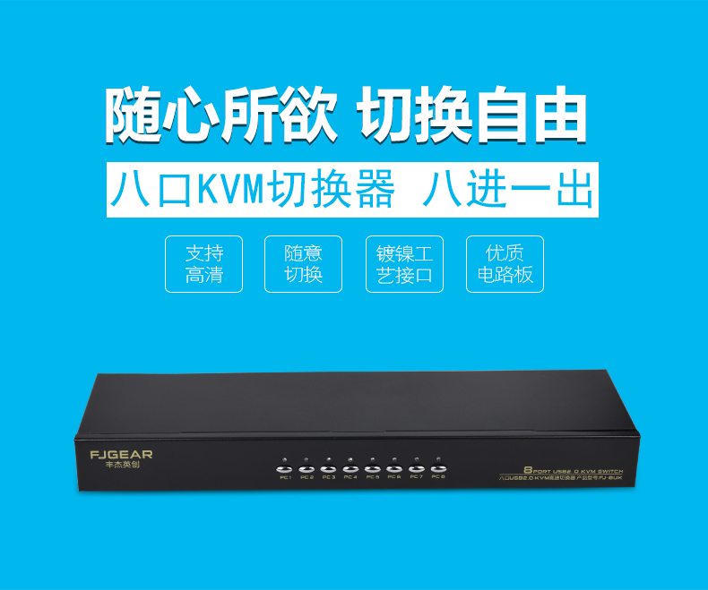 可手動(dòng)按鍵切換來實(shí)現(xiàn)多臺(tái)電腦間的切換。