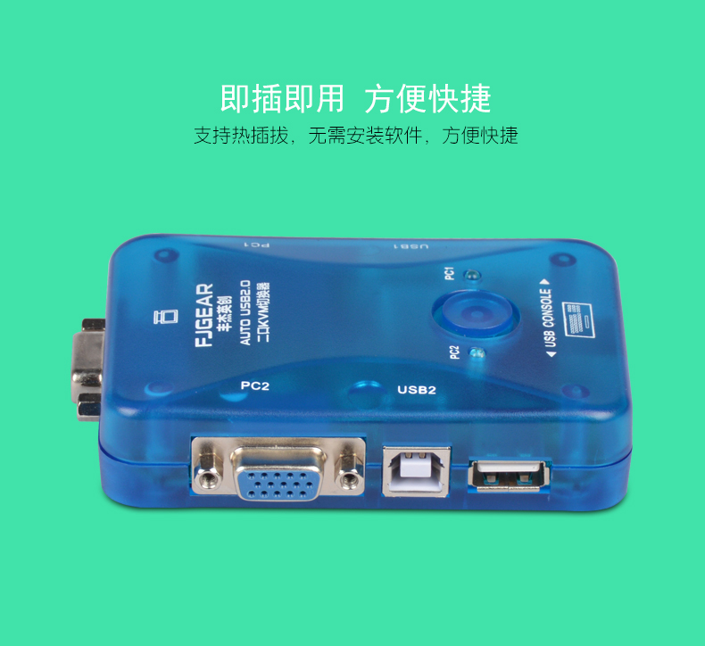 產(chǎn)品特性 1:2/4端口的KVM切換器采用迷你型袖珍設(shè)計(jì),輕便易用。 2:USB2.0端口 3:支持Microsoft智能滑鼠、羅技網(wǎng)絡(luò)滑鼠等 4:支持DOS、Win3.X Win95/98/98SE/2000/ME/XP、WinNT、Netware、Unix、Linux 5:支持熱插拔,不需要關(guān)掉KVM切換器和電腦就可以插上或者拔掉所連接的電腦 6:優(yōu)良的畫(huà)質(zhì),分辨率可以上到1920*1440,帶寬:250MHz 7:無(wú)須軟件控制,可以通過(guò)按鈕或者熱鍵選擇所要操作的電腦主機(jī) 8:有為監(jiān)控主機(jī)運(yùn)行而設(shè)的自動(dòng)檢測(cè)功能 9:顯示監(jiān)控狀態(tài)的LED指示燈