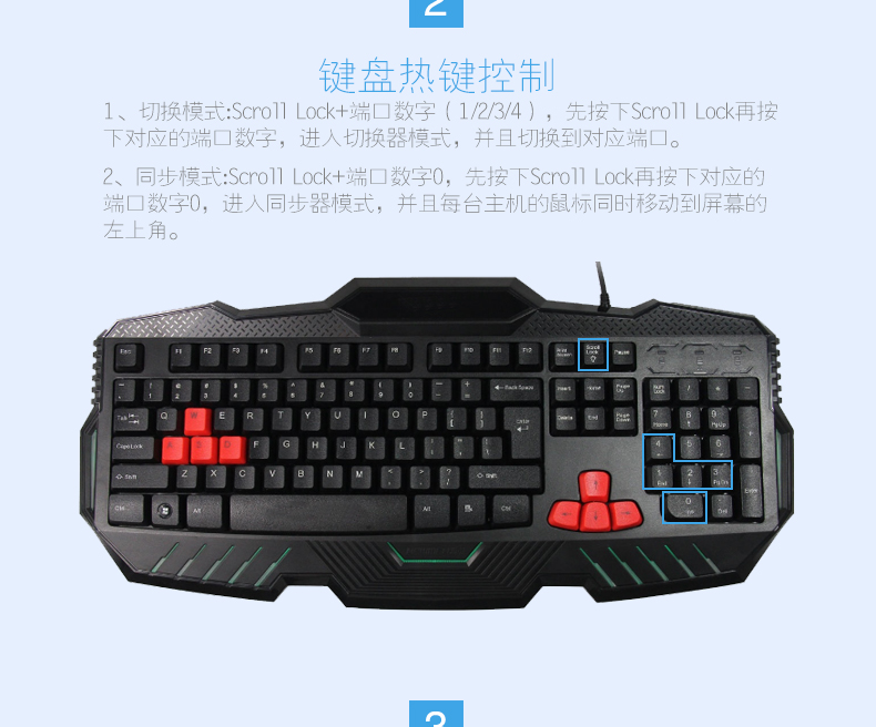 “Scroll Lock”+“端口數(shù)字”:先按下“Scroll Lock”,再按下對應(yīng)的“端口數(shù)字”,進入切換器模式,并且切換到對應(yīng)端口。