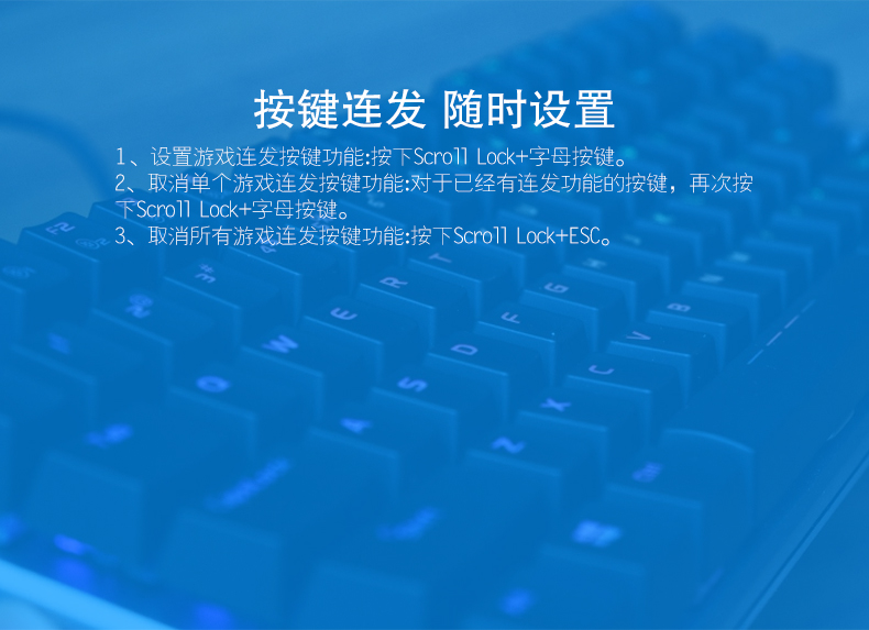 5)設(shè)置游戲連發(fā)按鍵功能:按下“Scroll Lock”+“字母按鍵”;