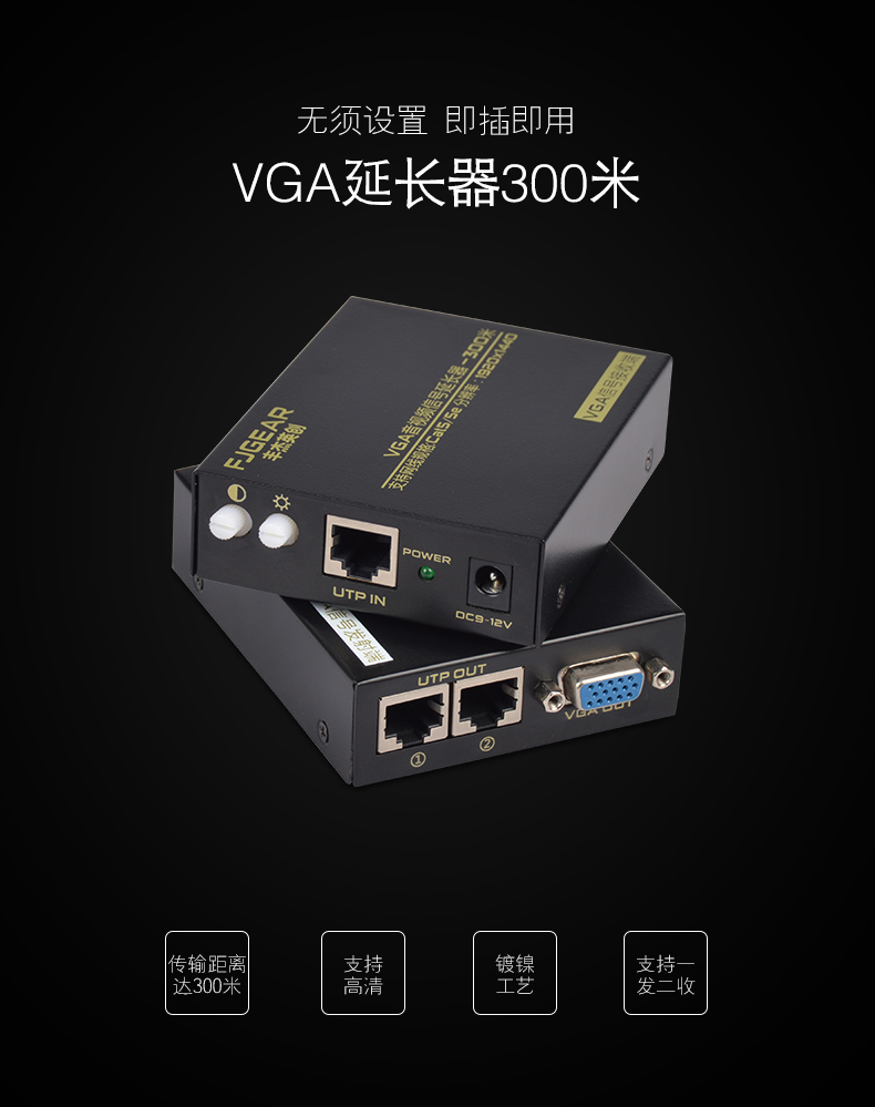 采用CAY5/5E/6網(wǎng)線替代VGA線來實現(xiàn)遠程距離傳輸,通過這套設備,VGA信號最遠傳輸距離可達300米。