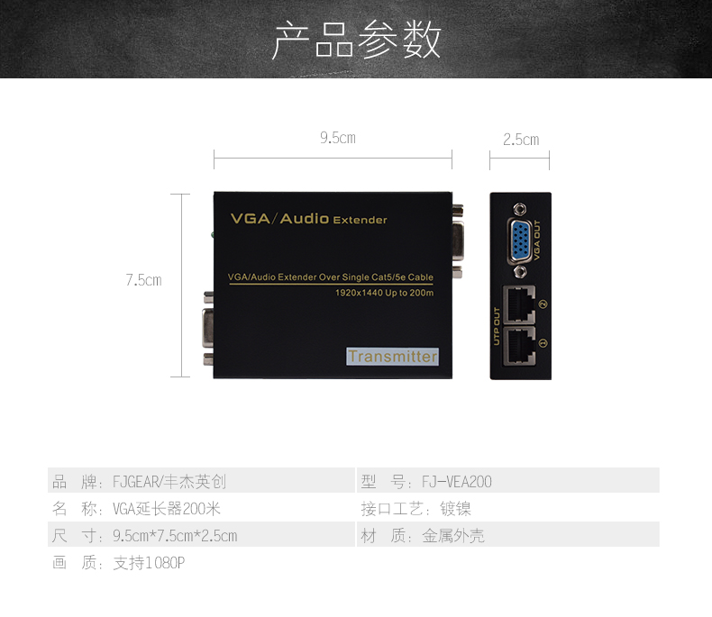 FJ-VEA200是一款VGA音視頻信號(hào)延長(zhǎng)器,通過(guò)本產(chǎn)品您只需要一根CAT5E/6的網(wǎng)線,即可將VGA和音頻信號(hào)延長(zhǎng)至200米;它主要應(yīng)用于各類辦公,教學(xué),影音娛樂(lè),證券市場(chǎng),安防監(jiān)控等場(chǎng)所,它是您工作和生活的好幫手!