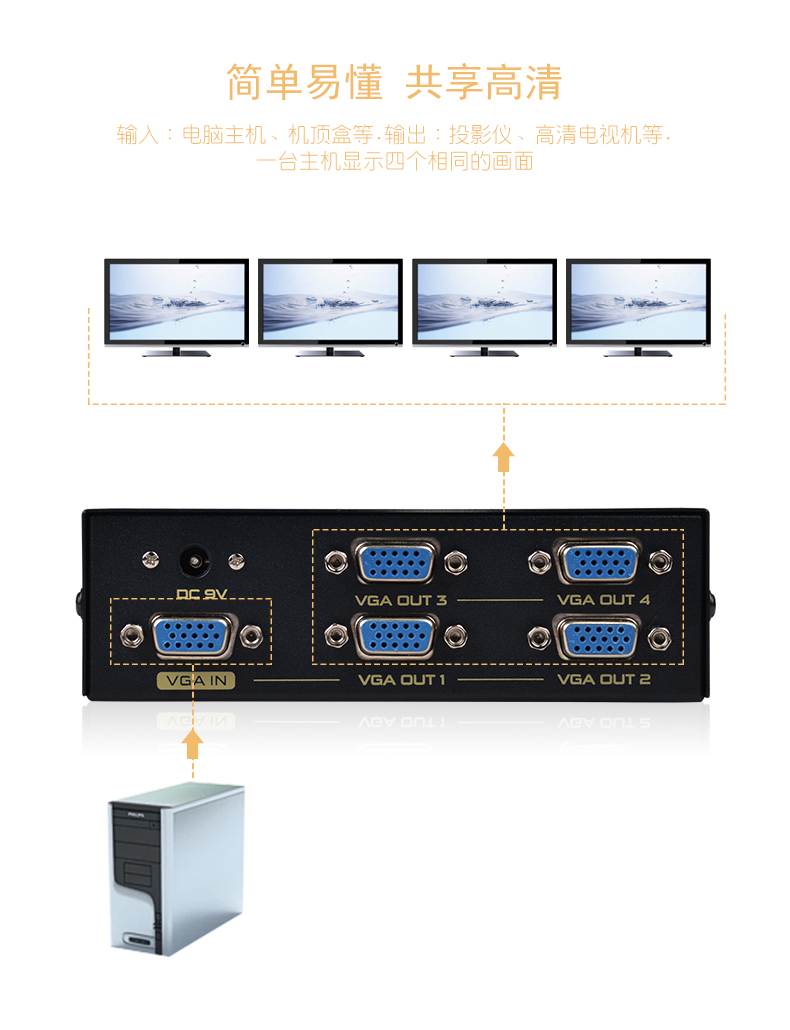 1:350MHz 系列VGA分配器是高清VGA信號分配器,適用于液晶電視機和投影儀等大屏幕顯示設(shè)備。具有長距離驅(qū)動功能