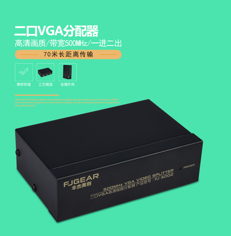 1:500MHz 系列VGA分配器是高清VGA信號(hào)分配器,適用于液晶電視機(jī)和投影儀等大屏幕顯示設(shè)備。具有長(zhǎng)距離驅(qū)動(dòng)功能