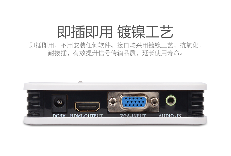 這是一款高清信號轉(zhuǎn)換器,通過智能芯片的處理,它可以將VGA模擬信號和AUDIO模擬信號轉(zhuǎn)換成一路HDMI信號;產(chǎn)品廣泛運用于臺式電腦/筆記本/DVD/機頂盒,播放器,攝像機等設備VGA信號源輸入,通過此轉(zhuǎn)換器連接后使高清電視,監(jiān)視器等顯示設備輸出hdmi高清視頻信號,從而解決了用戶模擬轉(zhuǎn)數(shù)字的顯示設備諒解方案,給您帶來炒房的高清視覺盛宴。