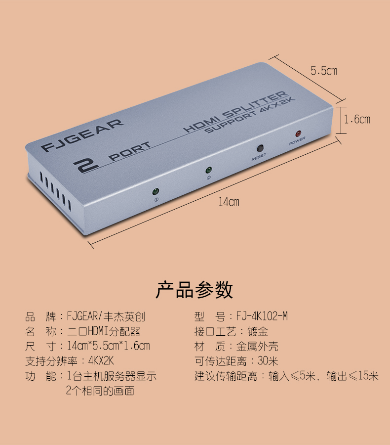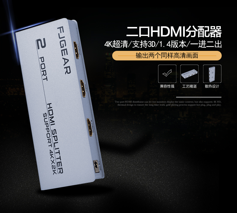 二口HDMI超清分配器,版本:HDMI1.4
