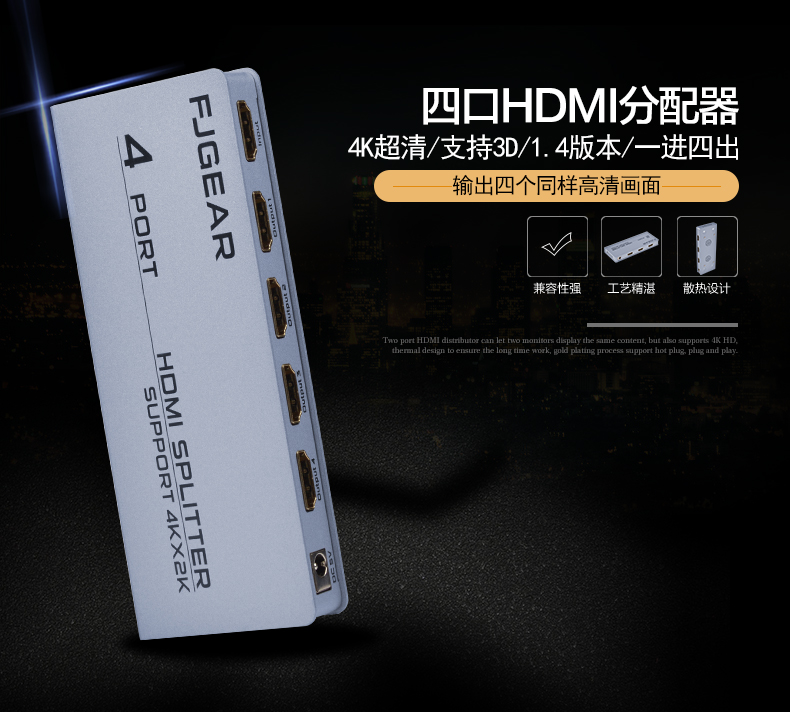 支持藍(lán)光DVD(3D)、網(wǎng)絡(luò)機(jī)頂盒、PC、NOTEBOOK,多媒體播放器,硬盤錄像機(jī)等等各類HDMI接口設(shè)備,帶復(fù)位功能