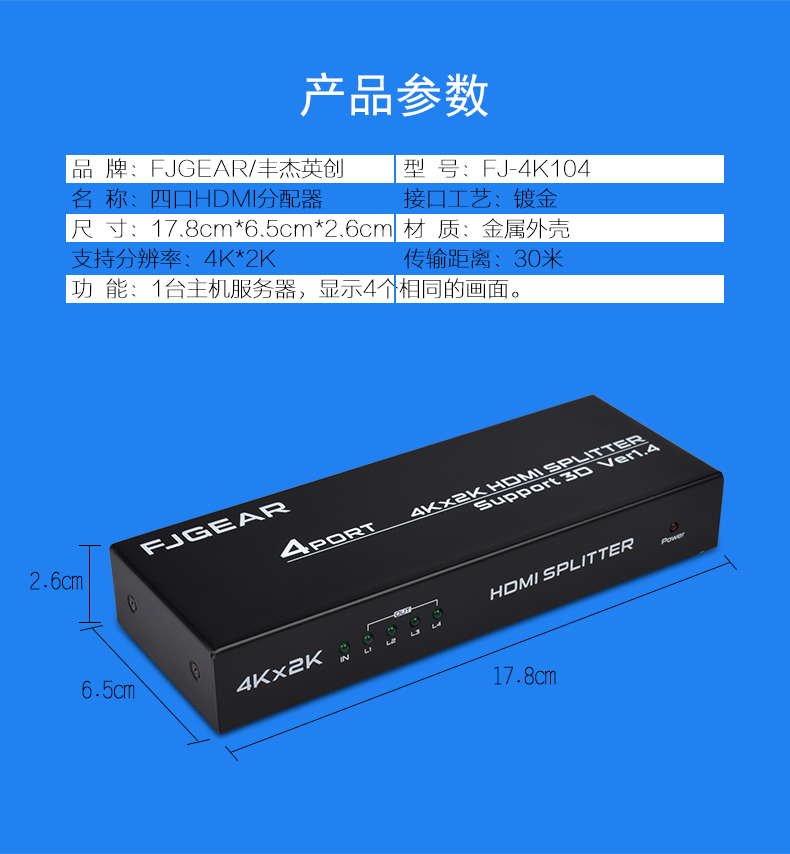 HDMI 一分四 FJ-4K104-M 豐杰英創(chuàng)HDMI分配器一分四 4K