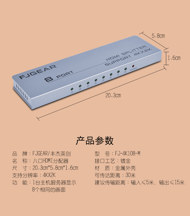 八口HDMI超清分配器,版本:HDMI1.4